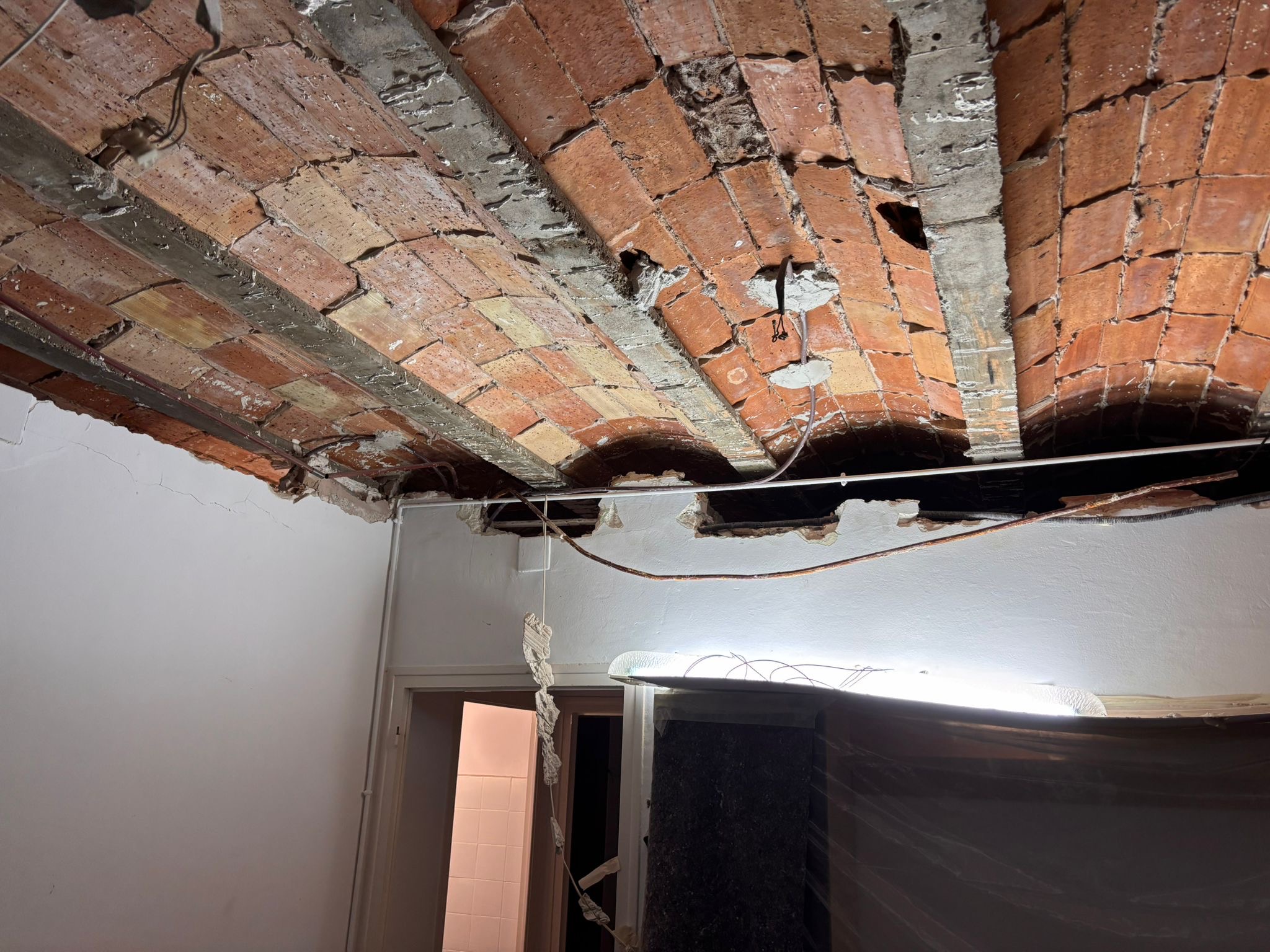 El edificio presentaba un deterioro progresivo en el sistema estructural de los forjados, formados por vigas de madera originales. Con el paso del tiempo, varios de estos elementos habían perdido capacidad resistente, generando deformaciones y riesgo estructural en distintas viviendas del edificio.