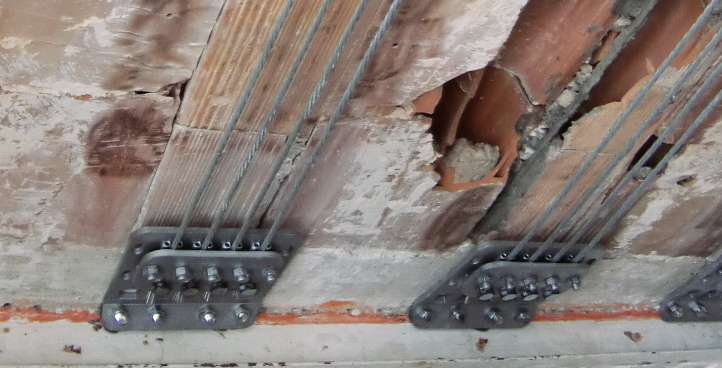 El sistema de tendones postensados se basa en la instalación de cables de acero de alta resistencia que se anclan a la estructura existente y se tensan de forma controlada, generando un esfuerzo contrario a las cargas del forjado y reduciendo deformaciones y tensiones.